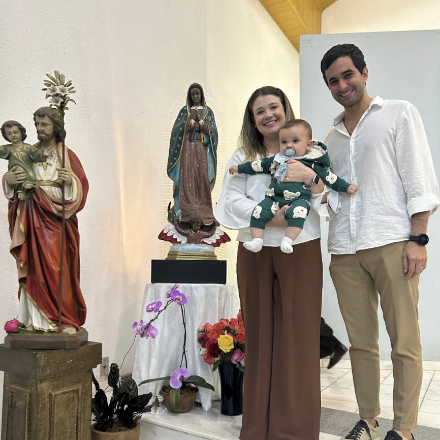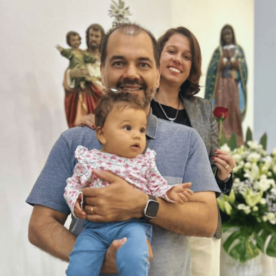 Dor de não conseguir engravidar sem explicação médica, bateria de exames revelou o diagnóstico de endometriose, intestino afetado, cirurgia poderia melhorar a saúde e aumentar as chances de gravidez, que estavam em apenas 25% de chance de gravidez natural, cirurgia bem sucedida, gravidez não chegava, fé se abalava mas não se perdia, em uma Missa do Sagrado Coração de Jesus veio a confirmação no coração.